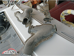 121~125 Frフード内、エアミキシングパイプとフレッシュエアーレギュレーターを外し、