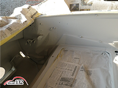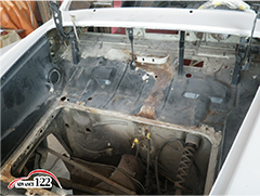 Frトランクルーム内を錆び取りと足付けをします。
