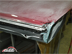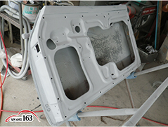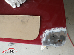 次に鍵鏨を使いパネルを成形後、パネルに合わせてドアの腐食部分を切り取ります。