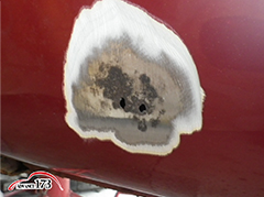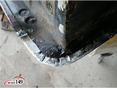 139 次に右ドアの状態を確認します。ドア前方下部の錆腐食の穴が有ります。