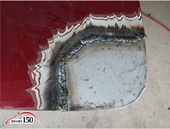 150~152 本熔接後、熔接後を削りハンマーリングして、サンダーで面を均します。