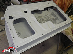 163~167 ドアをスタンドに立て内側の合わせ目にPOR-15塗り込みます。