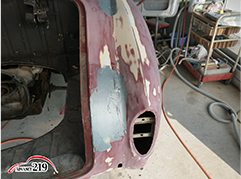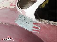 216~219 パテ割れしている部分は、サンダーで下地まで出し、アルミパテで押さえます。