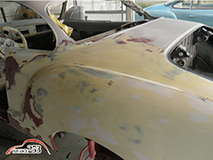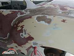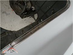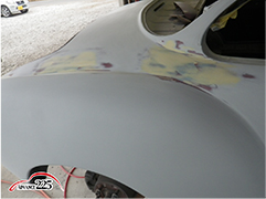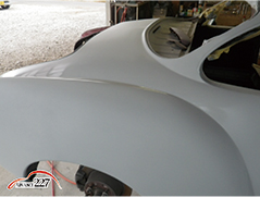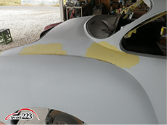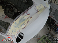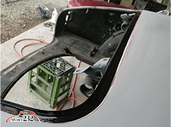 229~231 右Rrフェンダーを研ぎ上げた後、Rrフードシール部を、