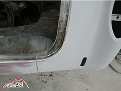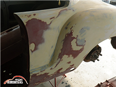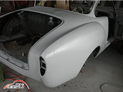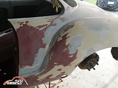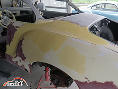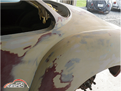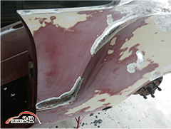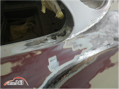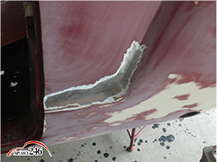 239 続いて、左Rrフェンダーの鈑金に入ります。