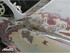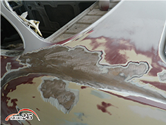 パテ割れの部分をディスクサンダー等で、錆が浸食していない所まで剥がします。