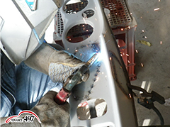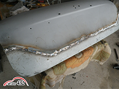 492 点付け熔接痕を削りハンマーリングして面を整えます。