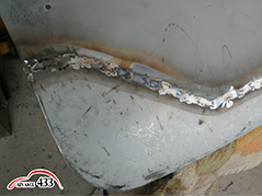435~437 サンダーで足付けをして、アルミパテを塗り付けます。