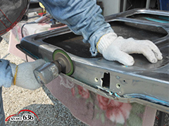 648~652 熔接跡をサンダーでならした後ポリッシャーを使い、