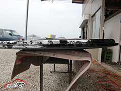 次にポリパテを塗り乾燥後#120、#240と番手を換えて研ぎます。