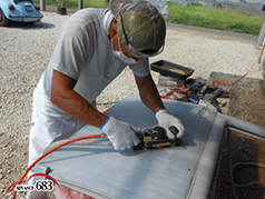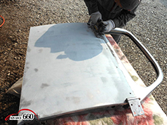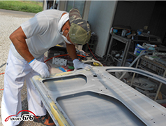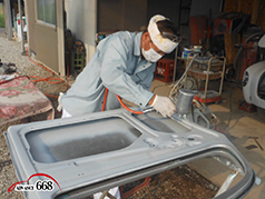 682 続いて表面を父が研ぎ、鈑金屋が手直しします。