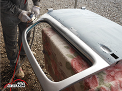 アルミパテの不要な窓周りや、触ってはいけないプレスラインまで