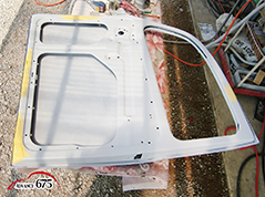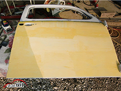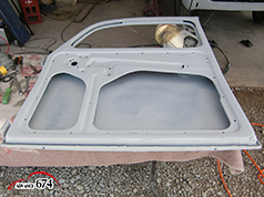 674 15日の作業は左ドアのパテ研ぎです。先ずは、内側からパテ研ぎを仕上げて行きます。