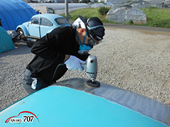 プレスライン付近などちょこっと鈑金屋が研ぎ直してサフェの準備をします。