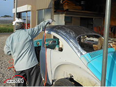 732~734 錆処理が済んだところで、エアーブローをして、仮サフェを吹き付けてもらいます。