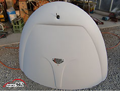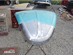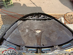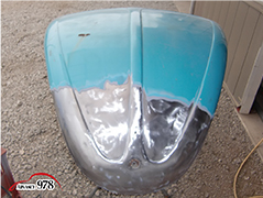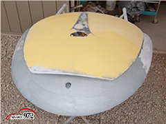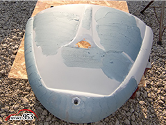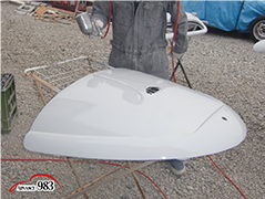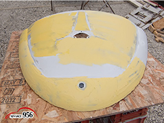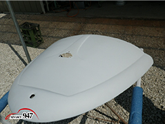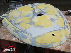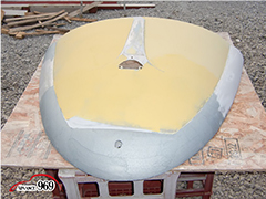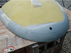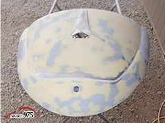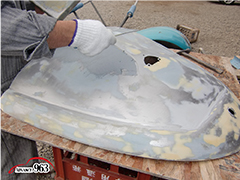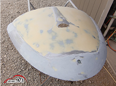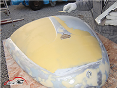 965~969 荒研ぎ後、ポリパテを塗り、フードの外周にアルミパテを塗ります。