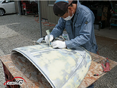 その後は佑さんが作業し、ポリパテの2回目を塗り付けたところで作業は終了です。