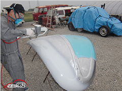 963.964 アルミパテを鈑金屋が塗り、研ぎは父にしてもらいます。