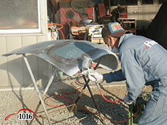 1015~1018 裏面の仮サフェの乾燥を待ち、表面の仮サフェを吹き付けます。18日の作業は終了です。
