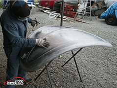 ポリパテが大体になった所で、鈑金屋がチェックします。