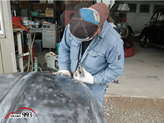 992.993 5日は、剥離したFrフードにハンマーリングを加えて面を整えます。