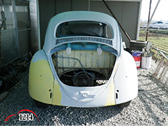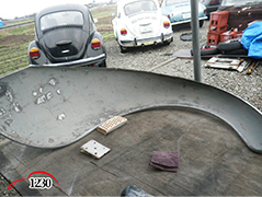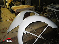 1230~1236 父は、左右フェンダーに塗ったPOR-15の指触乾燥を待ち、サフェを吹き付けます。