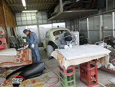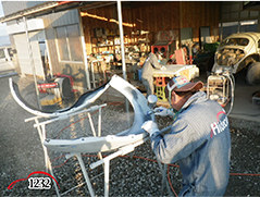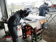 そんな中、佑さんはひたすらドアを研ぎ、父はフェンダー裏側にPOR-15を塗ります。