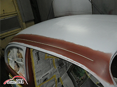 『屋根からRrフードにかけてプレスラインに沿ってラインを入れたい』とお話が有ったので、