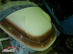 今回は、オーナー様こだわりの2トンカラー+屋根とRrフードのプレスに沿ってラインを入れました。
