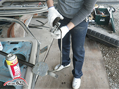 外したウィンドーワインダーに給油しながら動きをチェックします。