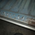 そして左サイドの作業に取り掛かり、熔接用の穴をドリルで空けてロッカーパネルの熔接準備をします。