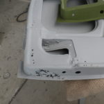 写真は飛びますが、用意したグリーンパネルと見比べ、インナーパネルから位置決めし切り取った後、アウターパネルも同じように位置合わせして切り取りました。