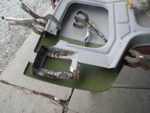 POR-15を塗り込んだ後は、再度インナーとアウターパネルを仮組して、インナーパネルから仮溶接しました。