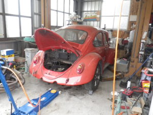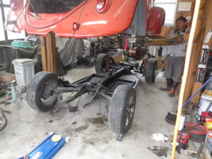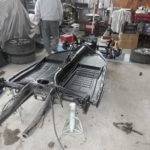 鈑金屋は、今回搭載予定の5速ミッションがフレームに干渉してしまう部分をサンダーで削り、クリアランスの加工をしました。(ミッションの仮付した時の写真を忘れました^^;)