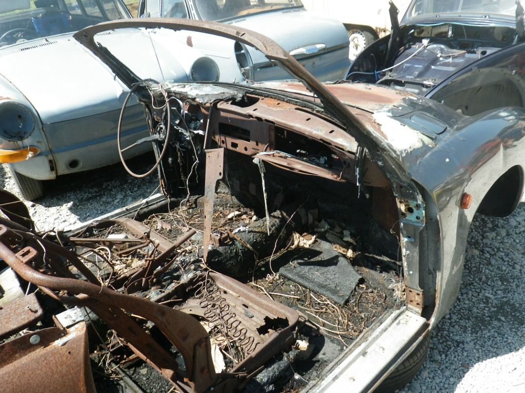 一方、’56 カルマン オーナー様には炎上カルマンconvの解体準備として、使えそうな部品を外してもらいました。