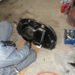 ミッションオイルを抜き取ってからブレーキ周りをバラシ、アクスルシャフトまでバラします。